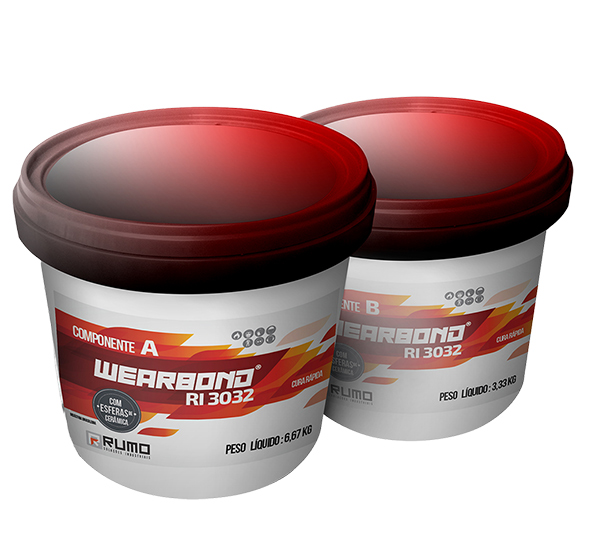 O composto para desgaste WEAR BOND RI 3032 da Rumo Industrial® é um sistema epóxi bi-componente com cura à temperatura ambiente contendo partículas de cerâmicas que são super rígidas com elevada resistência ao desgaste por abrasão e impacto. Indicado para largas áreas a serem reparadas ou a serem protegidas preventivamente em equipamentos sujeitos aos desgaste por abrasão e impacto, tais como: tubos, chutes,bombas de polpa, hidrociclones, bocais e volutas de bombas centrífugas, dentre outros.